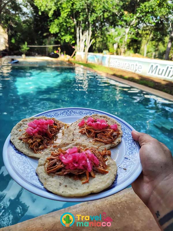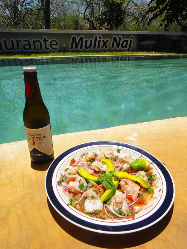 After the visit to the cenotes we will have lunch at the mulix restaurant which is 10 minutes away and enjoy regional food such as lime soup and poc chuc, and a fresh ceviche as a starter.