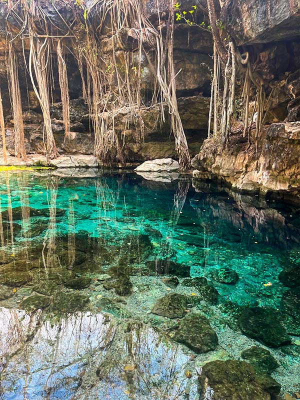 It is mandatory to go to the showers before entering the cenote, you can not bring food and beverages or pets. Diving is not allowed in this cenote.