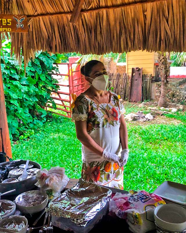 At the end of the second cenote a Yucatecan meal is prepared by local people of the area, on a terrace surrounded by fresh trees, we will have some Yucatecan snacks, a cochinita pibil as the main dish and dessert, accompanied by handmade tortillas.